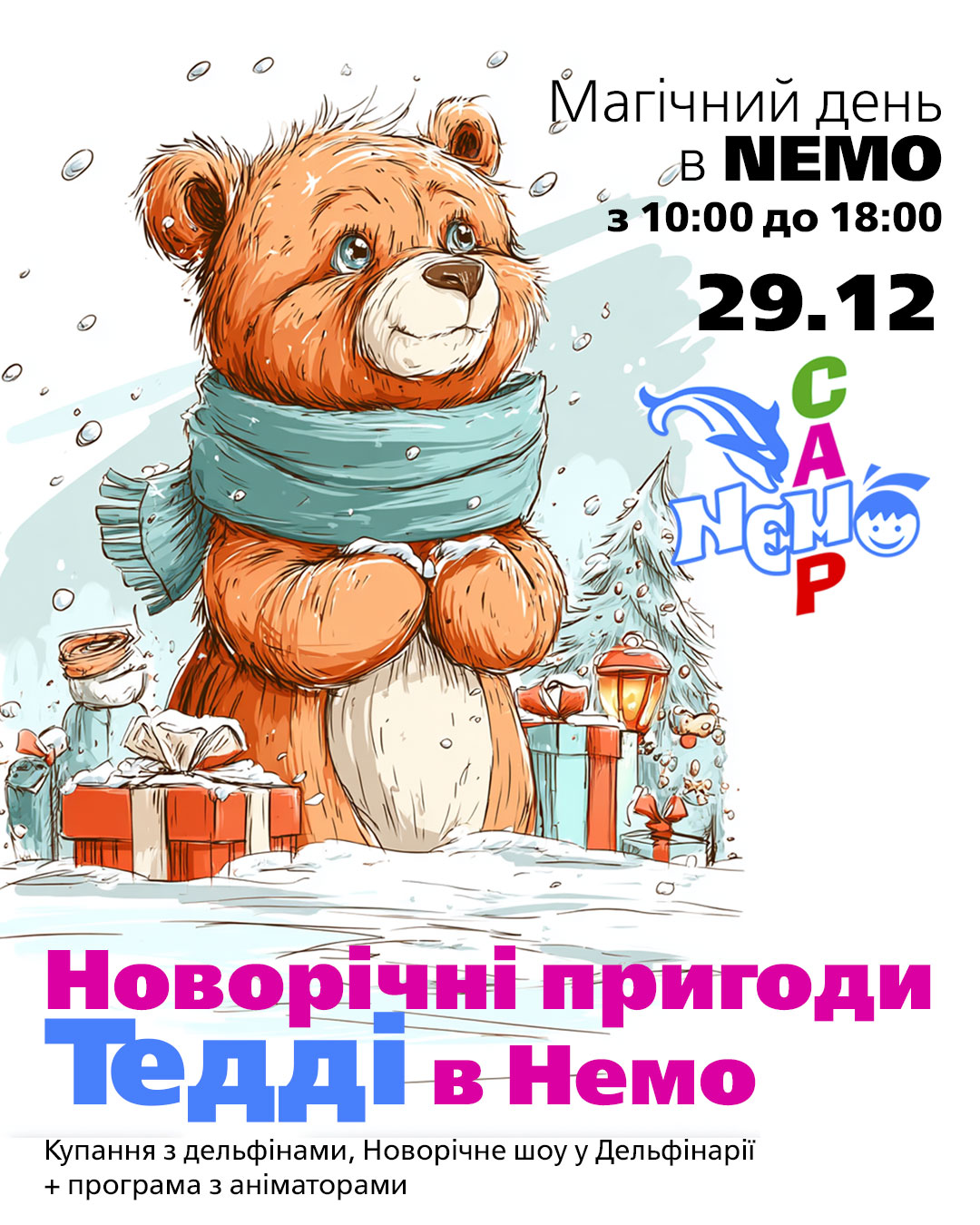 - Новорічна Вистава з дельфінами в Одеському дельфінарії NEMO;